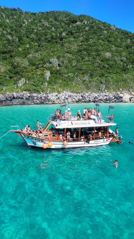 ✨ Passeio de Barco Tradicional em Arraial do Cabo 📍 Saída: Praia dos Anjos 🌊 Roteiro completo pelas águas mais bonitas do Brasil: ➡️ Ilha do Farol Parada para banho em uma das praias mais preservadas e famosas do país. ➡️ Prainhas do Pontal do Atalaia Parada panorâmica para fotos nas águas azul-turquesa. 🚫 Desembarque proibido por determinação do ICMBio/Marinha, sem previsão de liberação. ➡️ Gruta Azul, Fenda de Nossa Senhora e Pedra do Gorila Parada para contemplação e fotos dos cartões-postais de Arraial do Cabo. ➡️ Enseada do Guriri – 30 min Parada para mergulho e snorkel em águas cristalinas. ➡️ Praia do Forno – 30 min Piscina natural, ideal para banho e observação da vida marinha. 🔙 Retorno à Praia dos Anjos