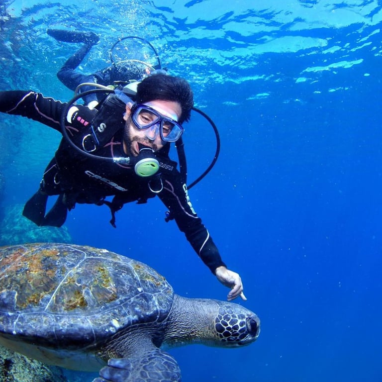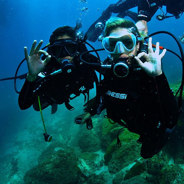 📍 Mergulho guiado – Até 10 metros de profundidade, cerca de 30 minutos explorando o fundo do mar.